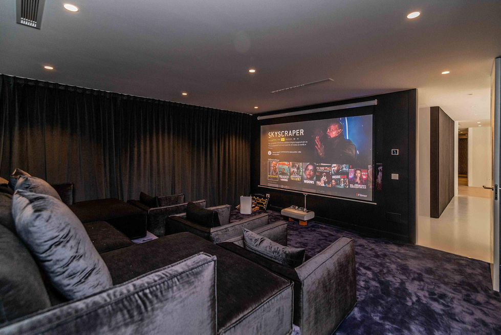 The house features minimalist furniture and statement pieces, combining functionality and style. Carefully selected materials and custom lighting throughout the home enhance its refined atmosphere, striking the perfect balance between contemporary elegance and practical design.